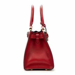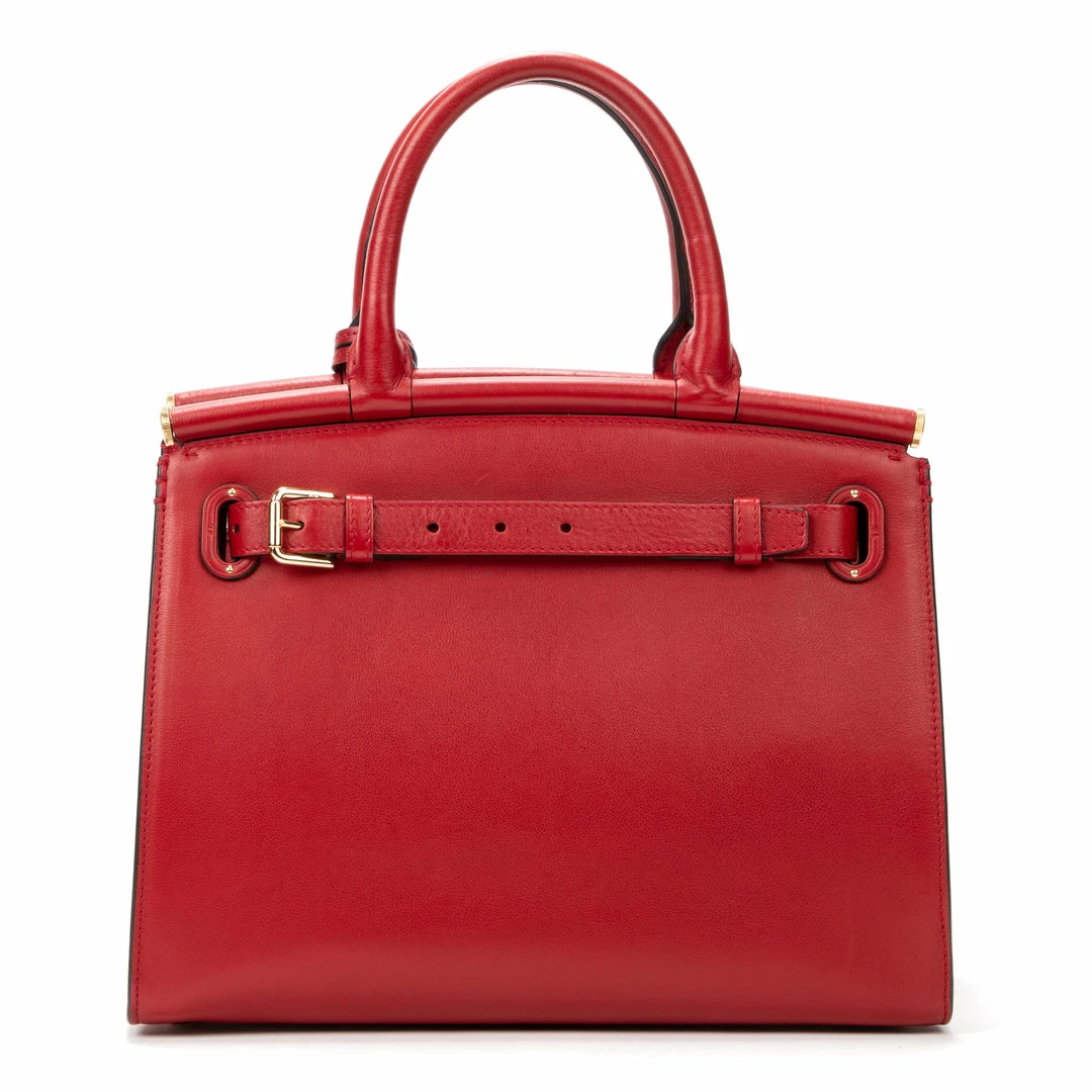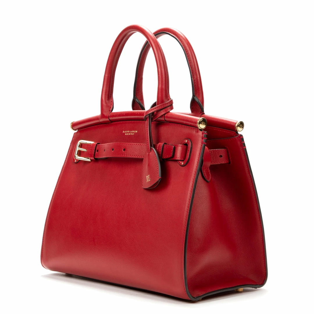 Ralph Lauren Handbag in Red Calfskin leather and Gold metal hardware. Dimensions – 30x24x16cm. Serial number – 435769047. Inclusions – Dust bag, strap, key holder.