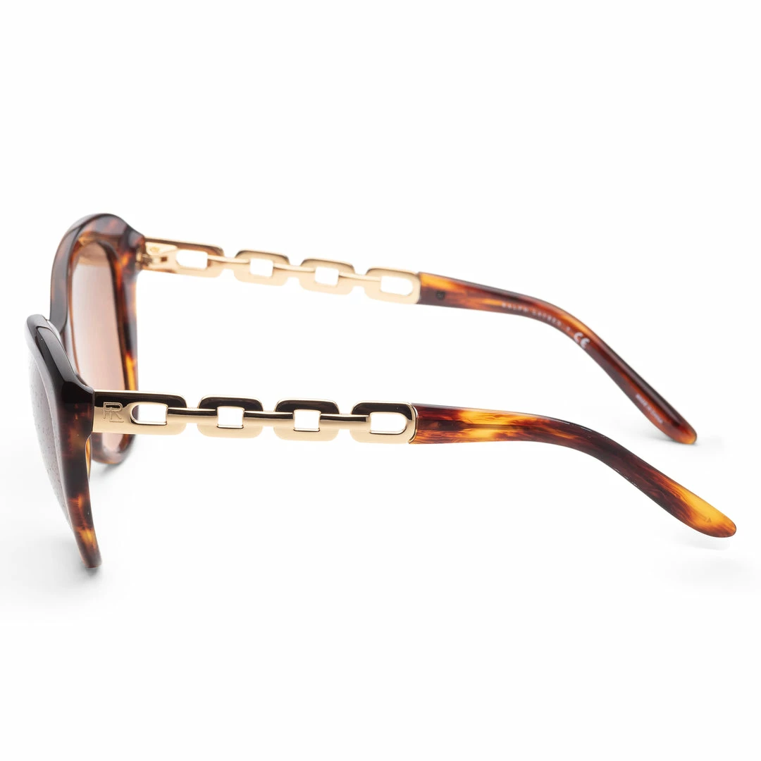 Dimensions – 56 mm x 17 mm x 140 mm. The frame is Plastic Cat-Eye shaped. The frame is Striped Havana and the lens is Orange Gradient Light Grey.