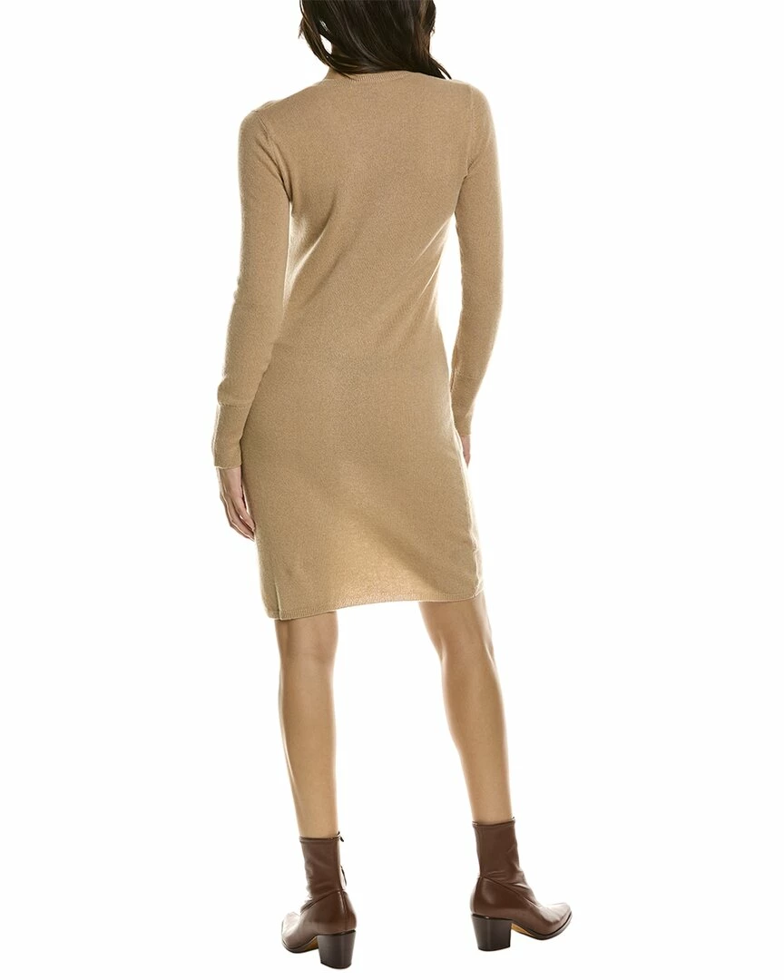 - Cashmere Crewneck Jersey Dress In Tan With Long Sleeve Design And Ribbed Trim