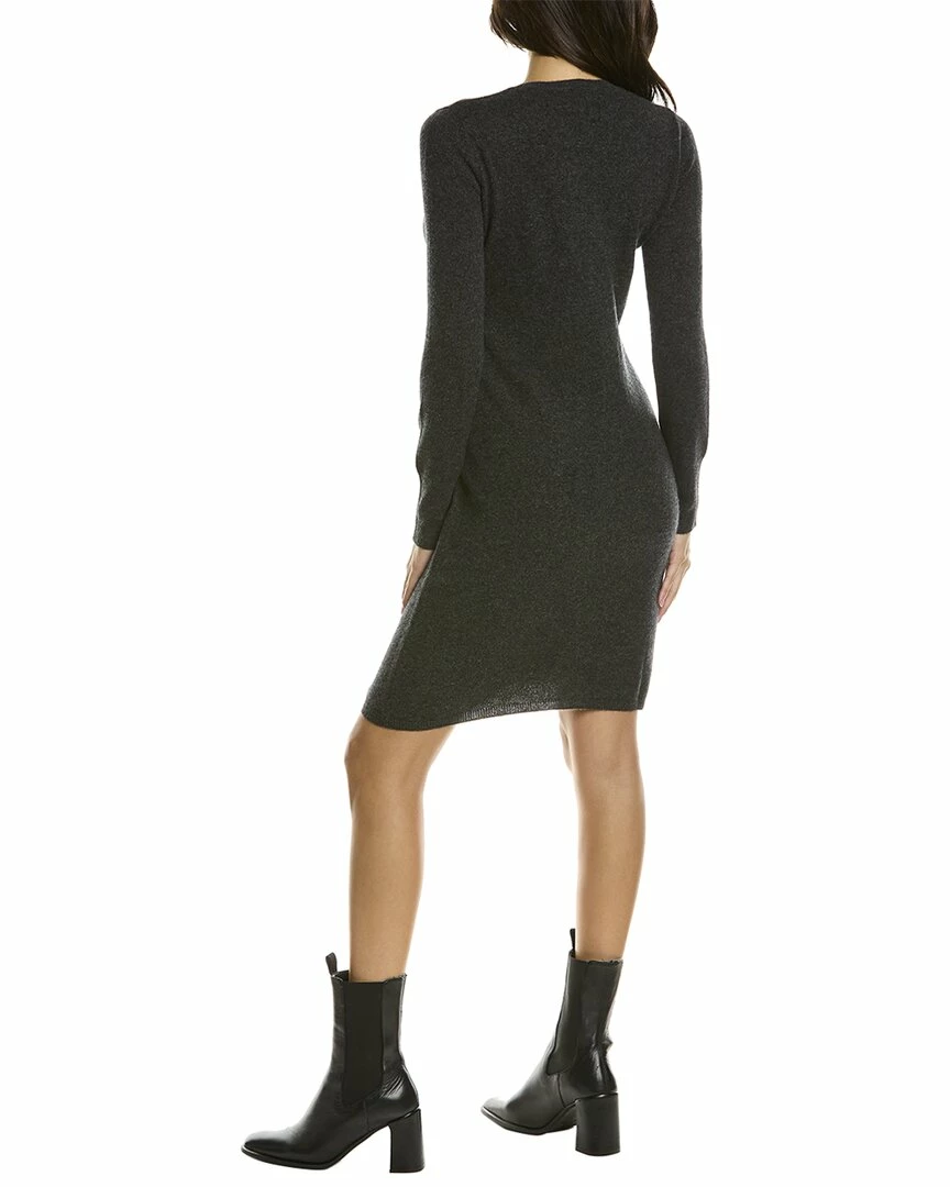 - Cashmere Crewneck Jersey Dress In Charcoal Grey With Long Sleeve Design And Ribbed Trim