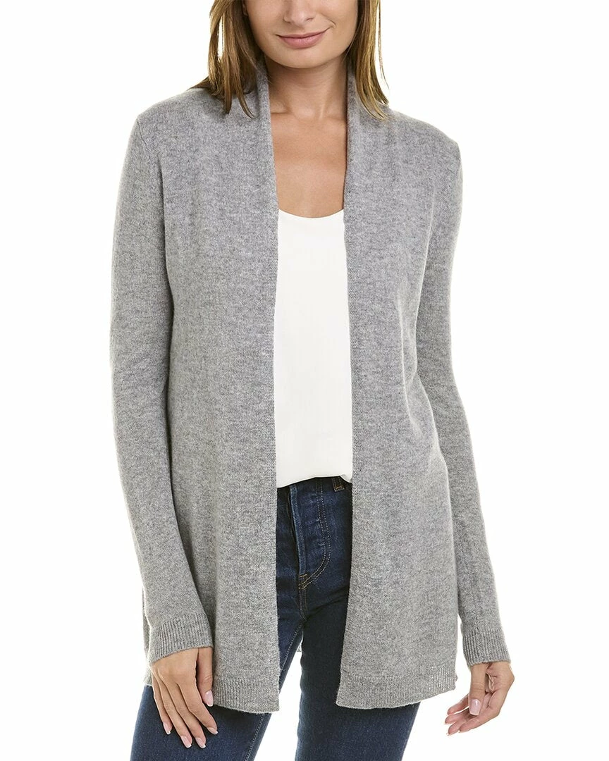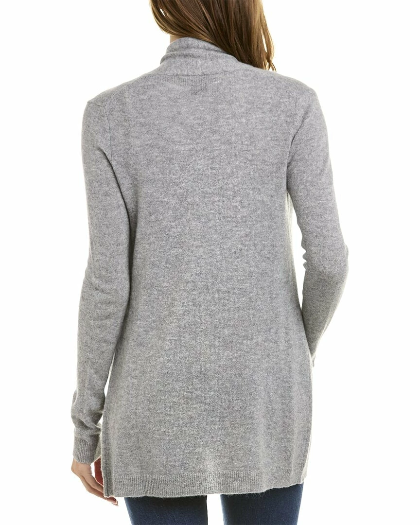 - Cashmere Drape Cardigan In Grey With Ribbed Trim