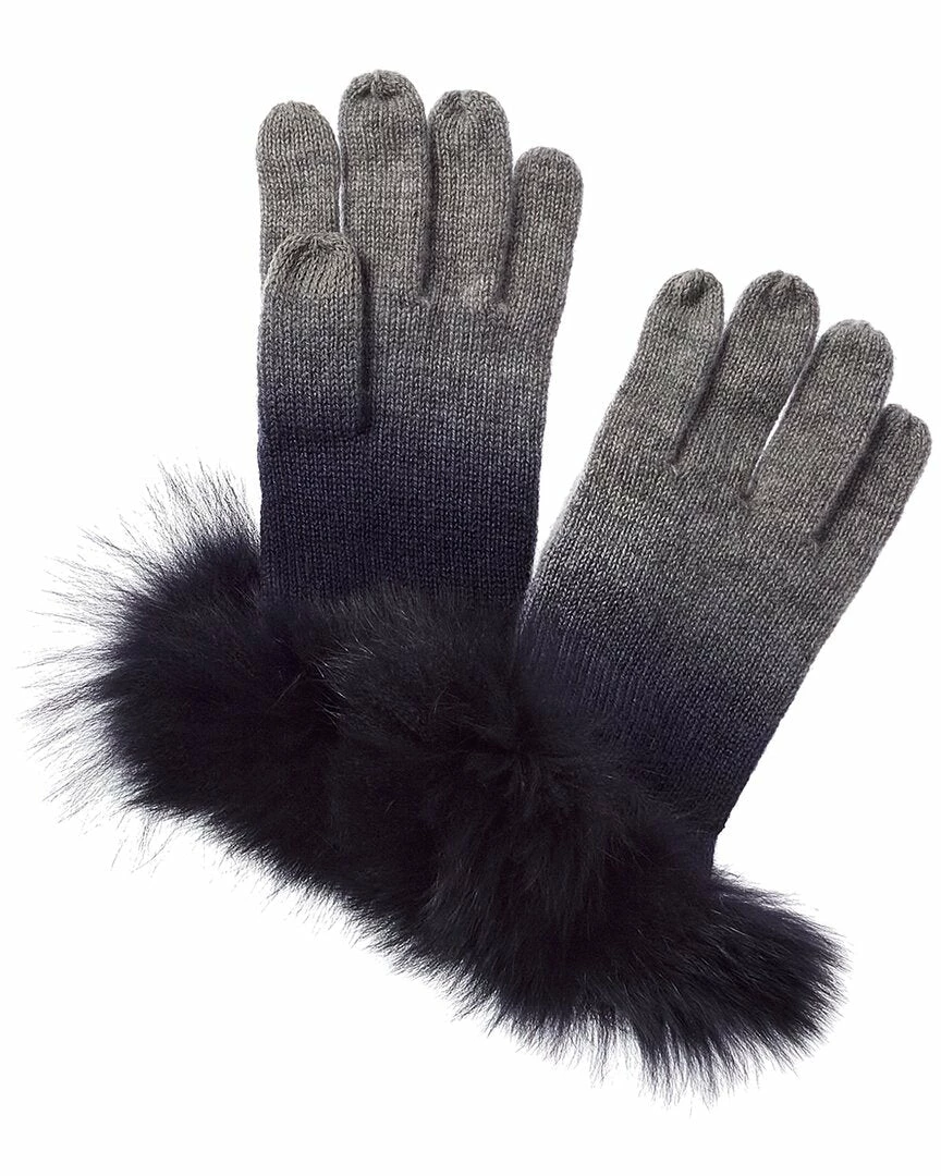 - Dip-Dye Cashmere Gloves In Grey/Navy With Fur Cuffs