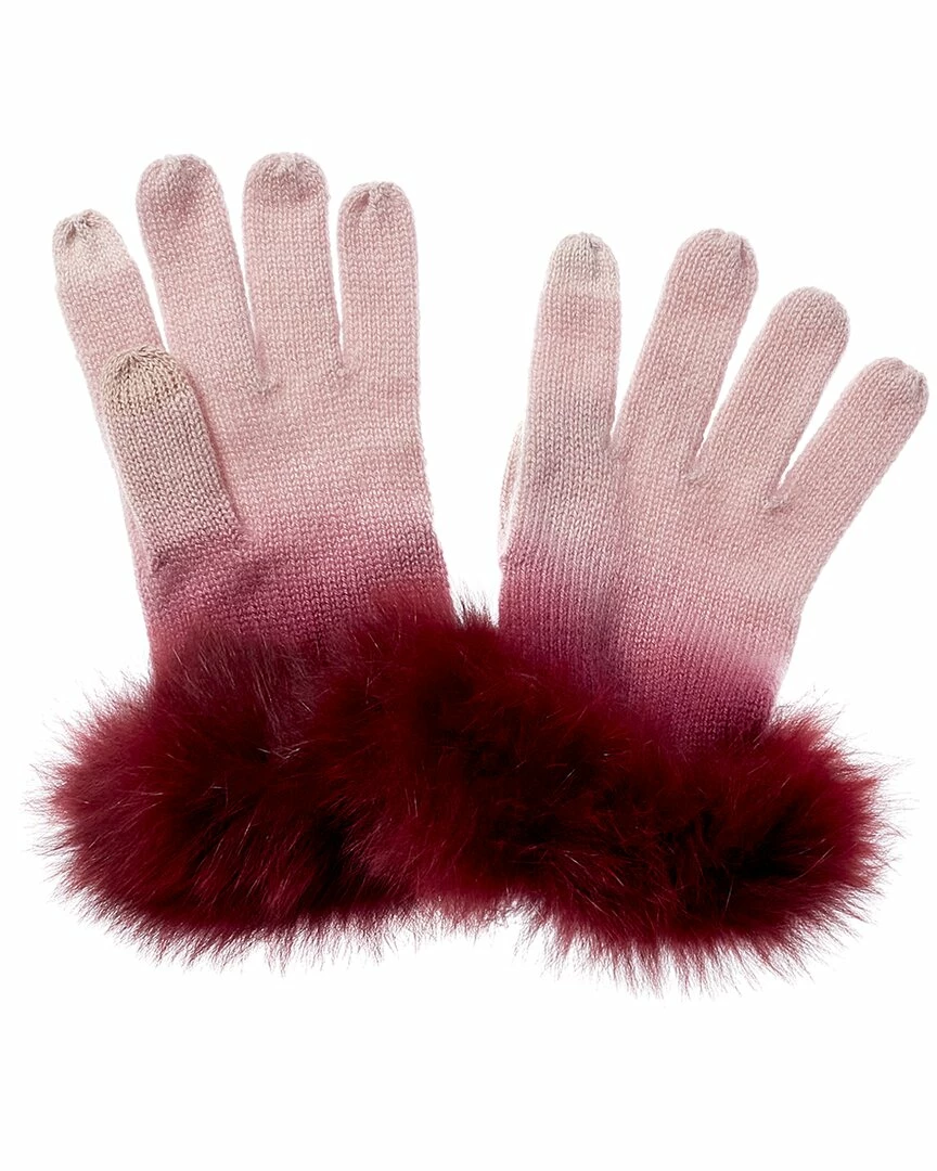 - Dip-Dye Cashmere Gloves In Pink With Fur Cuffs