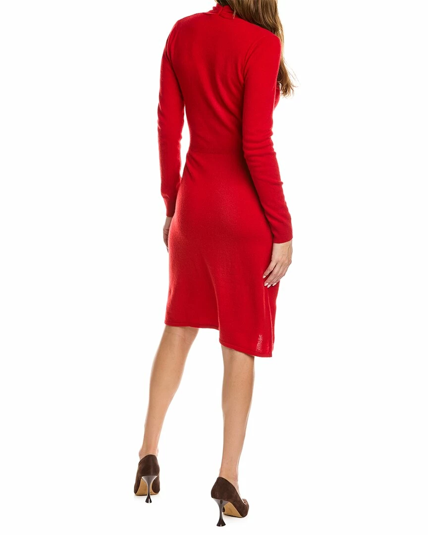 - Faux Wrap Cashmere Sweaterdress In Red With Surplice Bodice And Ribbed Trim