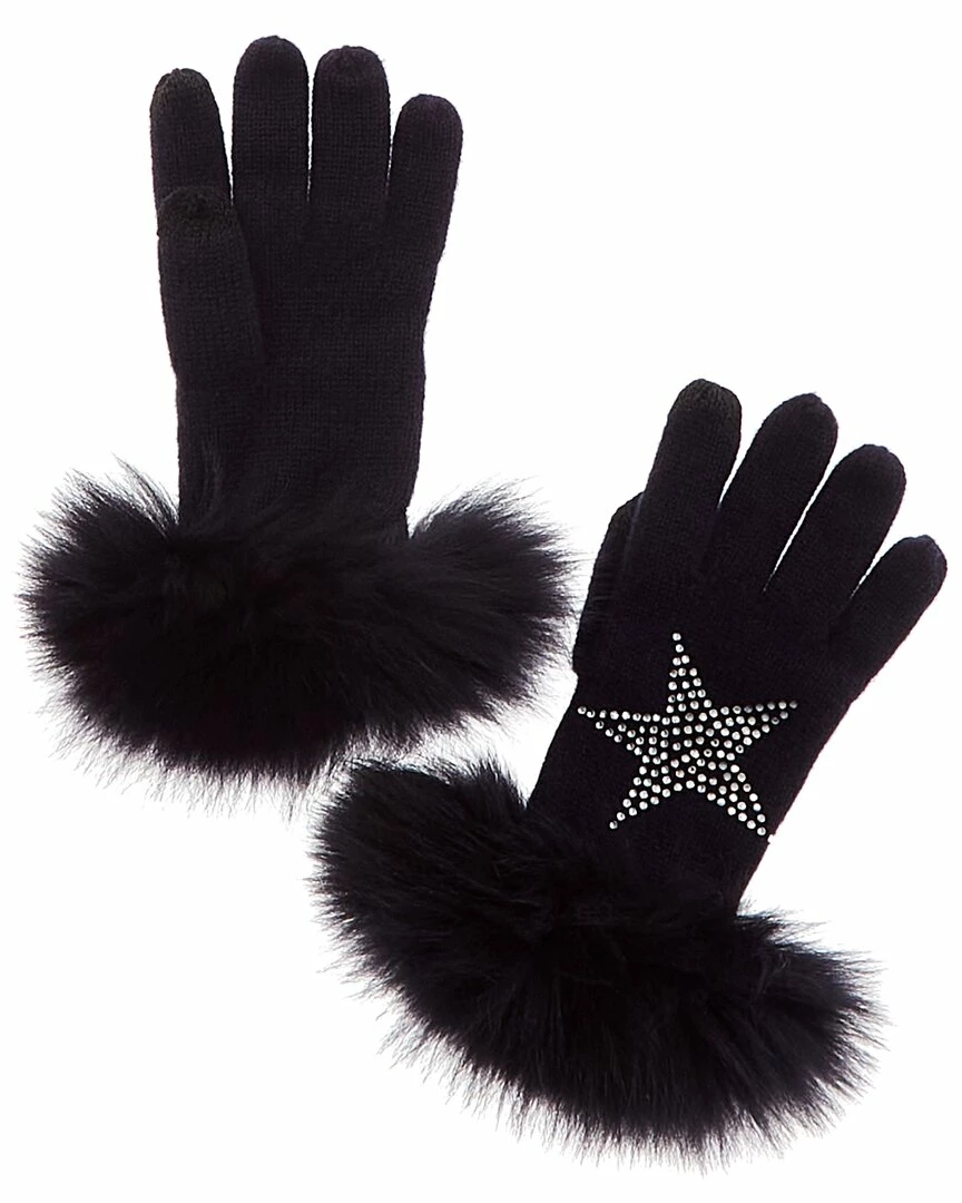 - Heatset Star Cashmere Gloves In Navy With Rhinestone-Embellished Star And Fur Trim