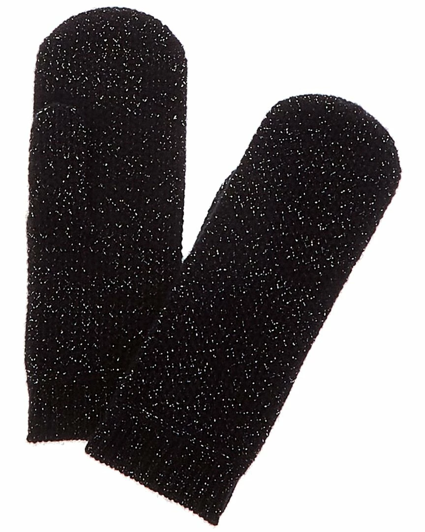- Honeycomb Lurex Cashmere Mittens In Black With Metallic Threading