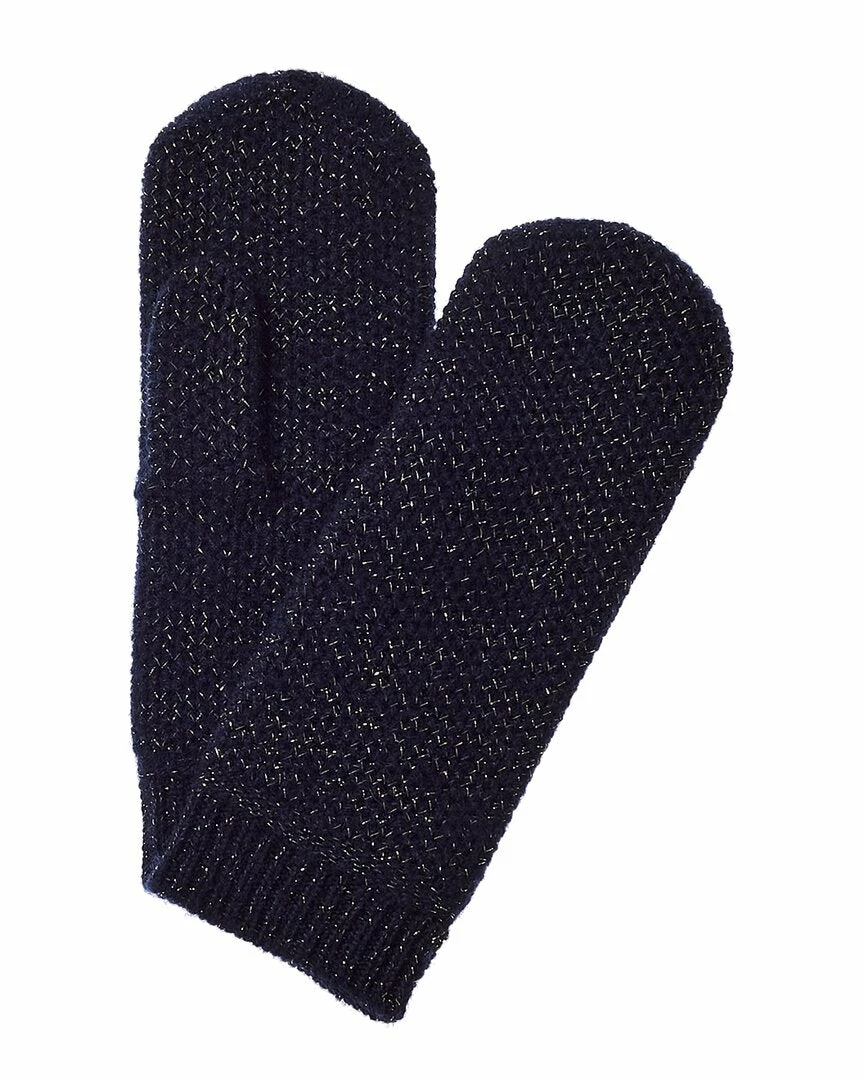 - Honeycomb Lurex Cashmere Mittens In Navy With Metallic Threading