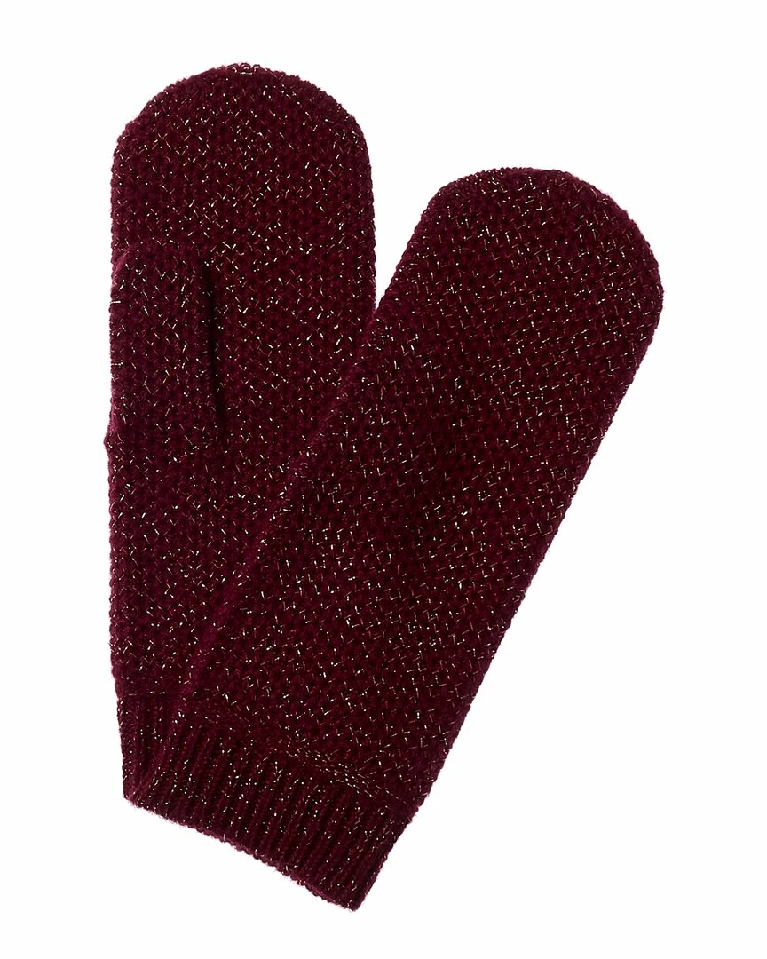 - Honeycomb Lurex Cashmere Mittens In Bordeaux With Metallic Threading