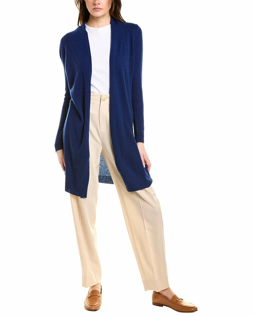 - Modern Cashmere Duster In Navy With Ribbed Trim