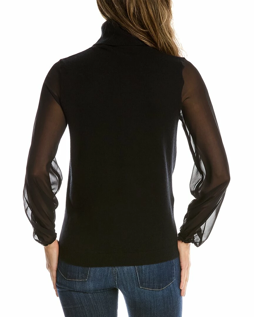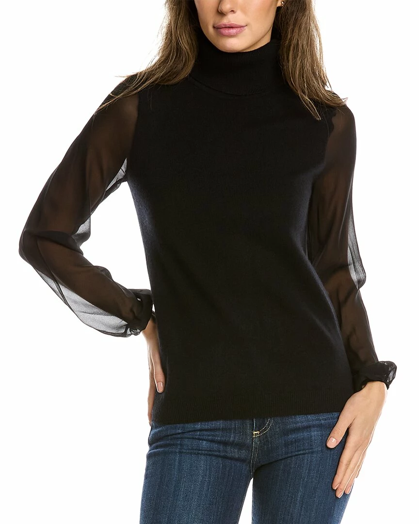 - Silk Sleeve Cashmere Sweater In Black With Turtleneck, Sheer Sleeves With Elasticized Cuffs And Ribbed Trim