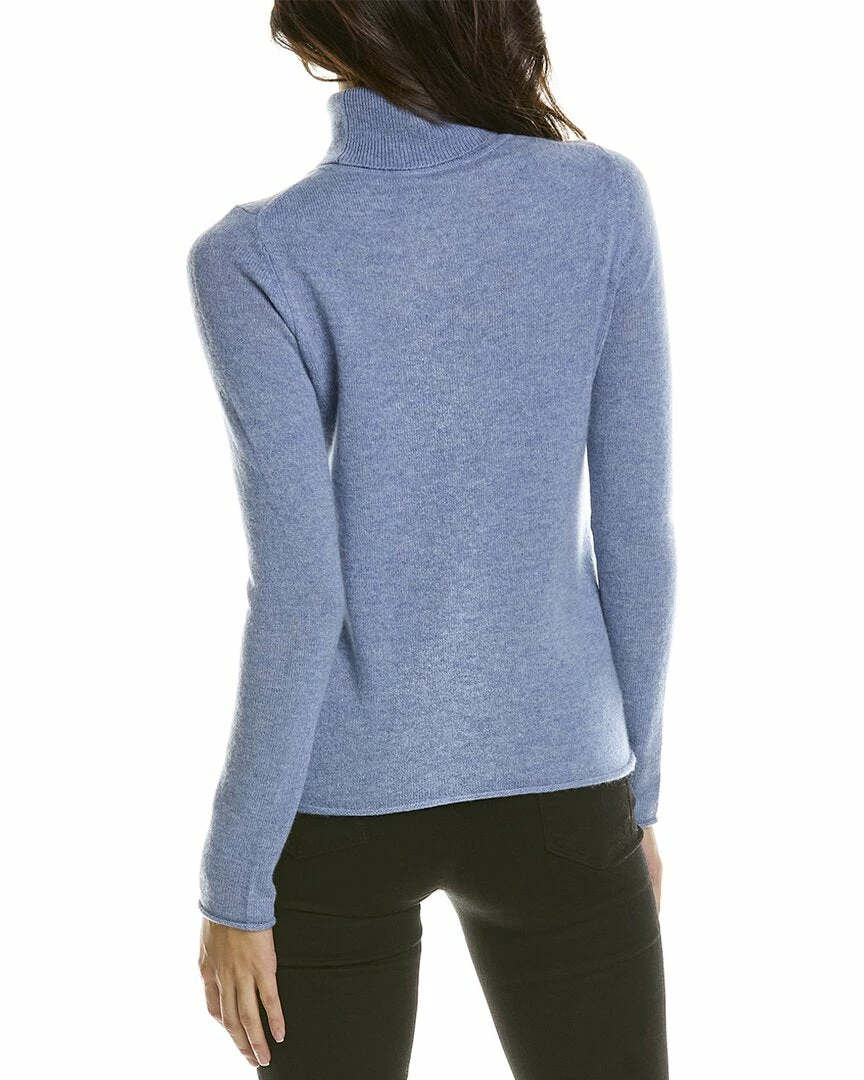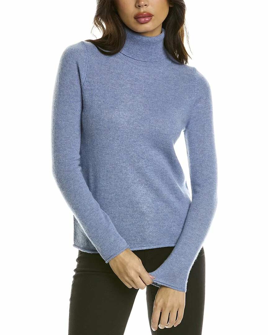 - Turtleneck Cashmere Sweater In Blue With Rolled Trim