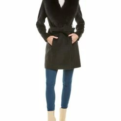 - Design Details – Fur Trim At Shawl Collar, Two Front Pockets, Tie-Belt At Waist