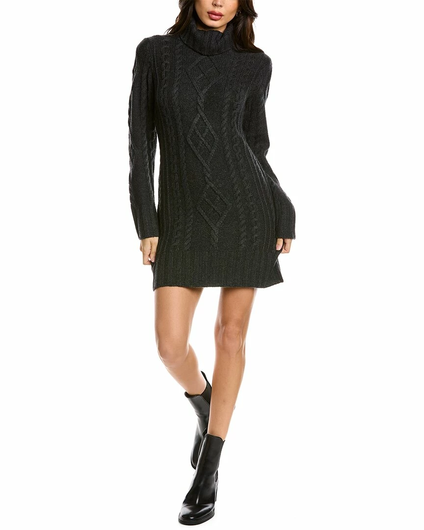 - Wool & Cashmere-Blend Tunic Dress In Charcoal Grey With Cable-Knit Design And Turtleneck